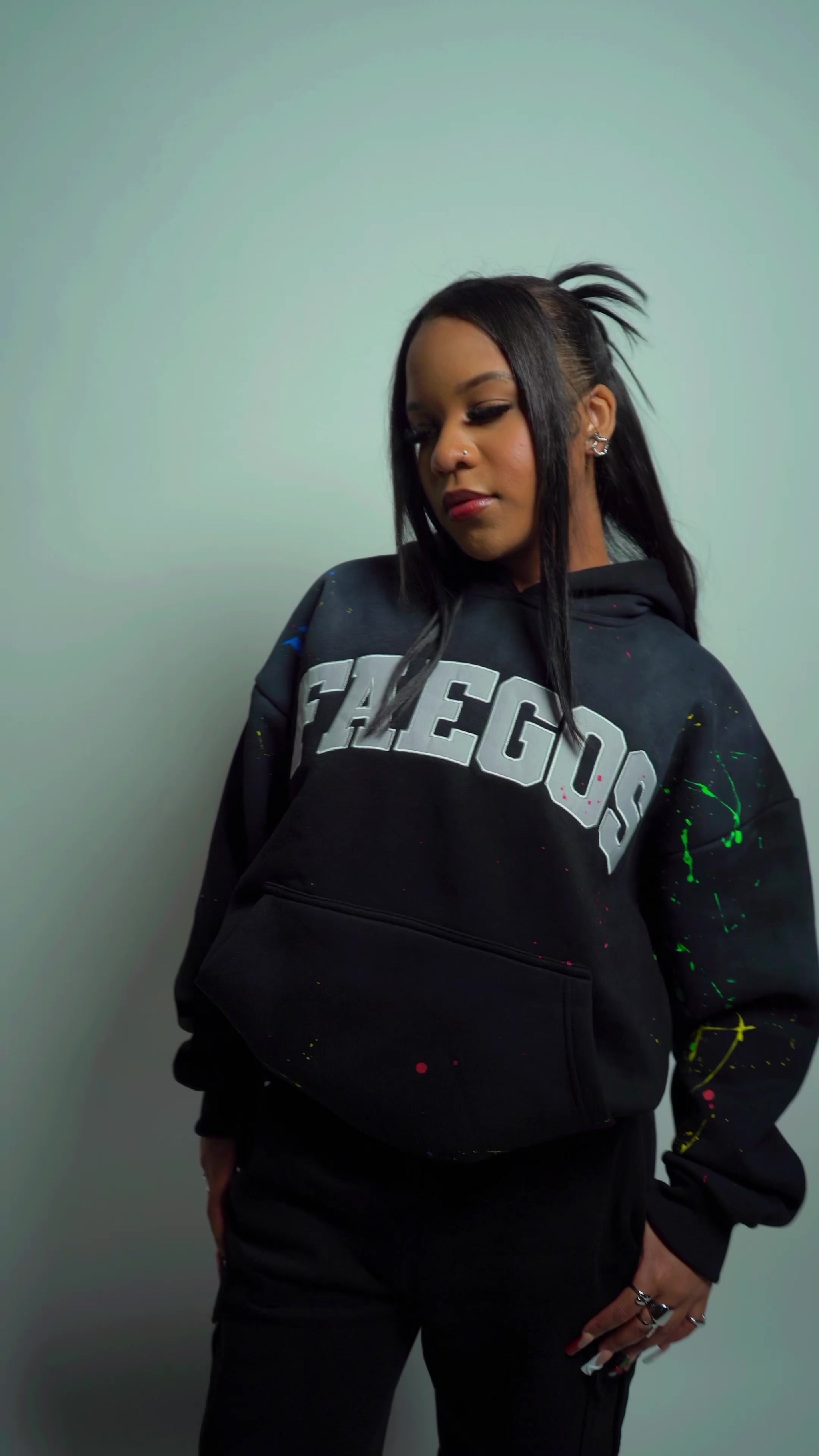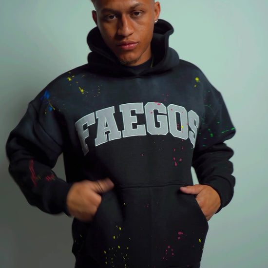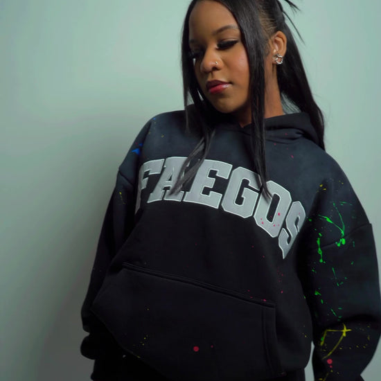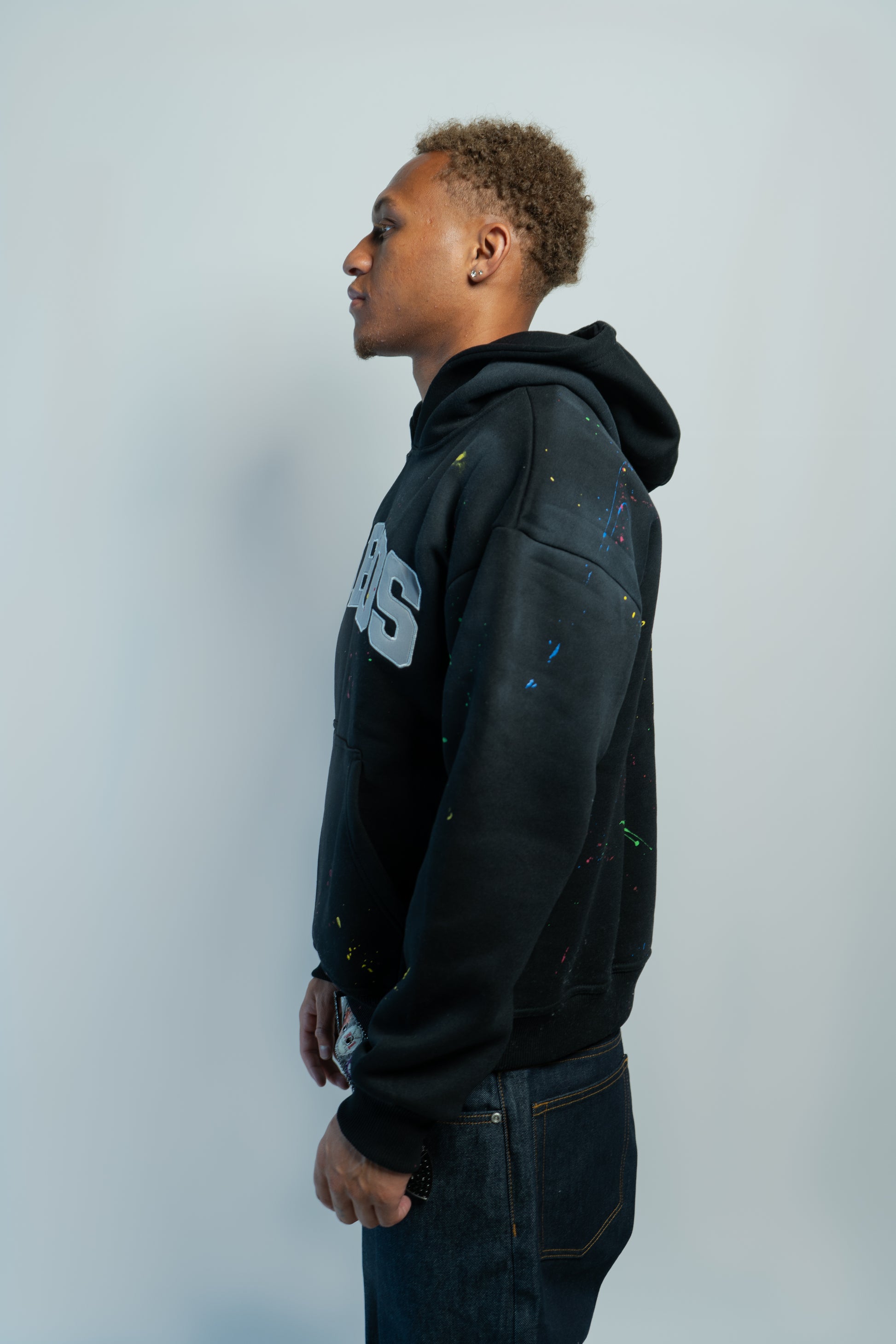 - Details : High Quality Embroidery with a nice stone wash with light black effect . Paint Splatters going across the hoodie